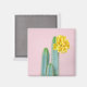 This trio of blue cactus sits on a pink background with a yellow flower.