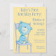 Customise your own Blue Calico Bear Invitation! Input your information into the template fields provided to create your personalised party invite!_x005F_x005F_x005F_x000D__x005F_x000D_ _x005F_x005F_x005F_x000D__x005F_x000D_ Just like the triumphant toddler who has finally climbed up onto the furniture for the first time, Calico Bear sits on his blue chair with a content smile on his face. This adorable illustration by David Walker from the book "Bears on Chairs" by Candlewick Press shows the cute, blue-and-white bear sitting happily on his single chair. Children and adults alike will find this cheerful image endearing.