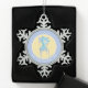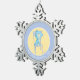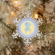 Blue Calico Bear Smiling on Chair Snowflake Pewter Christmas Ornament