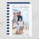 Modern Minimalist Elegance Calligraphy Ink Pen Handwritten Script Seas & Greetings Photo Striped Holiday Card - Navy Blue Text