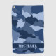 Blue Camouflage Pattern Monogram Name Golf Towel