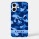 Customise this blue camouflage iPhone 16 case with your your name in a trendy modern CAP font in dark blue on light blue. It's so modern, girly and trendy! Perfect for any country girl!