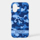 Customize this blue camouflage iPhone 17 case with your name in a trendy modern CAP font in dark blue on light blue. It's so modern, girly and trendy! Perfect for any country girl!