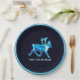 A glowing blue bull caribou, or reindeer, superimposed on a starry background. Add your own text. The caribou (Rangifer tarandus), known as the reindeer outside of North America, is a deer of the Arctic and Subarctic. While overall widespread and numerous, some subspecies are rare and one has gone extinct. The Inuit word tuktu means - deer that never stops moving. Caribou are always on the move, going north to calve, heading for the winter grounds, and south in the summer. Caribou considerably in colour and size. Uniquely among deer, both genders grow antlers, though these are larger in the males and there are a few populations where females lack them completely. Caribou hunting and herding of semi-domesticated reindeer (for meat, hides, antlers, milk and transportation) are important to several Arctic and Subarctic people. Even far outside its range, the caribou/reindeer is well known due to the myth, probably originating in early 19th century America, in which Santa Claus's sleigh is pulled by flying reindeer, a popular secular element of Christmas. In actual Lapland, reindeer would pull a pulk. Distribution and habitat The caribou/reindeer is a widespread and numerous species in the northern Holarctic, being present in both tundra and taiga (boreal forest). It was originally was found in Scandinavia, eastern Europe, Russia, Mongolia, and northern China north of the 50th latitude. In North America, it was found in Canada, Alaska (USA), and the northern conterminous USA from Washington to Maine. In the 19th century, it was apparently still present in southern Idaho. It also occurred naturally on Sakhalin, Greenland, and probably even in historical times in Ireland. During the late Pleistocene era, reindeer were found as far south as Nevada and Tennessee in North America and Spain in Europe.Today, then species has disappeared from many areas within this large historical range, especially from the southern parts, where it vanished almost everywhere. Large populations are still found in Norway, the Markku region of Finland, Sweden, Siberia, Greenland, Alaska, and Canada. Domesticated reindeer are mostly found in northern Fennoscandia and Russia, with a herd of approximately 150-170 reindeer living around the Cairngorms region in Scotland. The last remaining wild tundra reindeer in Europe are found in portions of southern Norway. A few reindeer from Norway were introduced to the South Atlantic island of South Georgia in the beginning of the 20th century. Today, there are two distinct herds still thriving there, permanently separated by glaciers. Their total numbers are no more than a few thousand. The flag and the coat of arms of the territory contain an image of a reindeer. Around 4000 reindeer have been introduced into the French sub-Antarctic archipelago of Kerguelen Islands. East Iceland has a small herd of about 2500–3000 animals. Caribou and reindeer numbers have fluctuated historically, but many herds are in decline across their range. This global decline is linked to climate change for northern, migratory caribou and reindeer herds and industrial disturbance of caribou habitat for sedentary, non-migratory herds. Fur Fur colour varies considerably, both individually, and depending on season and subspecies. Northern populations, which usually are relatively small, are whiter, while southern populations, which typically are relatively large, are darker. This can be seen well in North America, where the northermost subspecies, the Peary Caribou, is the whitest and smallest subspecies of the continent, while the southermost subspecies, the Woodland Caribou, is the darkest and largest. The coat has two layers of fur, a dense woolly undercoat and longer-haired overcoat consisting of hollow, air-filled hairs. Antlers Reindeer antlers grow again each year under a layer of fur called velvet. In most populations both sexes grow antlers, which (in the Scandinavian variety) for old males fall off in December, for young males in the early spring, and for females in the summer. The antlers typically have two separate groups of points, a lower and upper. Domesticated reindeer are shorter-legged and heavier than their wild counterparts. There is considerable subspecific variation in the size of the antlers (e.g., rather small and spindly in the northernmost subspecies), but in some subspecies the bull reindeer's antlers are the second largest of any extant deer, after the moose, and can range up to 39 inches (100 cm) in width and 53 inches (135 cm) in beam length. They have the largest antlers relative to body size among deer.Antler size plays a significant role in establishing group hierarchy. Nose and hooves Reindeer have specialised noses featuring nasal turbinate bones that dramatically increase the surface area within the nostrils. Incoming cold air is warmed by the animal's body heat before entering the lungs, and water is condensed from the expired air and captured before the deer's breath is exhaled, used to moisten dry incoming air and possibly absorbed into the blood through the mucous membranes. Reindeer hooves adapt to the season: in the summer, when the tundra is soft and wet, the footpads become sponge-like and provide extra traction. In the winter, the pads shrink and tighten, exposing the rim of the hoof, which cuts into the ice and crusted snow to keep it from slipping. This also enables them to dig down (an activity known as "cratering") through the snow to their favourite food, a lichen known as reindeer moss. The knees of many species of reindeer are adapted to produce a clicking sound as they walk. Diet Reindeer are ruminants, having a four-chambered stomach. They rely primarily on lichens in winter, especially reindeer moss. However, they also eat the leaves of willows and birches, as well as sedges and grasses. There is some evidence to suggest that on occasion, they will also feed on lemmings, arctic char, and bird eggs. Reindeer herded by the Chukchis have been known to de