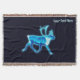 A glowing blue bull caribou, or reindeer, superimposed on a starry background. Add your own text. The caribou (Rangifer tarandus), known as the reindeer outside of North America, is a deer of the Arctic and Subarctic. While overall widespread and numerous, some subspecies are rare and one has gone extinct. The Inuit word tuktu means - deer that never stops moving. Caribou are always on the move, going north to calve, heading for the winter grounds, and south in the summer. Caribou considerably in colour and size. Uniquely among deer, both genders grow antlers, though these are larger in the males and there are a few populations where females lack them completely. Caribou hunting and herding of semi-domesticated reindeer (for meat, hides, antlers, milk and transportation) are important to several Arctic and Subarctic people. Even far outside its range, the caribou/reindeer is well known due to the myth, probably originating in early 19th century America, in which Santa Claus's sleigh is pulled by flying reindeer, a popular secular element of Christmas. In actual Lapland, reindeer would pull a pulk. Distribution and habitat The caribou/reindeer is a widespread and numerous species in the northern Holarctic, being present in both tundra and taiga (boreal forest). It was originally was found in Scandinavia, eastern Europe, Russia, Mongolia, and northern China north of the 50th latitude. In North America, it was found in Canada, Alaska (USA), and the northern conterminous USA from Washington to Maine. In the 19th century, it was apparently still present in southern Idaho. It also occurred naturally on Sakhalin, Greenland, and probably even in historical times in Ireland. During the late Pleistocene era, reindeer were found as far south as Nevada and Tennessee in North America and Spain in Europe.Today, then species has disappeared from many areas within this large historical range, especially from the southern parts, where it vanished almost everywhere. Large populations are still found in Norway, the Markku region of Finland, Sweden, Siberia, Greenland, Alaska, and Canada. Domesticated reindeer are mostly found in northern Fennoscandia and Russia, with a herd of approximately 150-170 reindeer living around the Cairngorms region in Scotland. The last remaining wild tundra reindeer in Europe are found in portions of southern Norway. A few reindeer from Norway were introduced to the South Atlantic island of South Georgia in the beginning of the 20th century. Today, there are two distinct herds still thriving there, permanently separated by glaciers. Their total numbers are no more than a few thousand. The flag and the coat of arms of the territory contain an image of a reindeer. Around 4000 reindeer have been introduced into the French sub-Antarctic archipelago of Kerguelen Islands. East Iceland has a small herd of about 2500–3000 animals. Caribou and reindeer numbers have fluctuated historically, but many herds are in decline across their range. This global decline is linked to climate change for northern, migratory caribou and reindeer herds and industrial disturbance of caribou habitat for sedentary, non-migratory herds. Fur Fur colour varies considerably, both individually, and depending on season and subspecies. Northern populations, which usually are relatively small, are whiter, while southern populations, which typically are relatively large, are darker. This can be seen well in North America, where the northermost subspecies, the Peary Caribou, is the whitest and smallest subspecies of the continent, while the southermost subspecies, the Woodland Caribou, is the darkest and largest. The coat has two layers of fur, a dense woolly undercoat and longer-haired overcoat consisting of hollow, air-filled hairs. Antlers Reindeer antlers grow again each year under a layer of fur called velvet. In most populations both sexes grow antlers, which (in the Scandinavian variety) for old males fall off in December, for young males in the early spring, and for females in the summer. The antlers typically have two separate groups of points, a lower and upper. Domesticated reindeer are shorter-legged and heavier than their wild counterparts. There is considerable subspecific variation in the size of the antlers (e.g., rather small and spindly in the northernmost subspecies), but in some subspecies the bull reindeer's antlers are the second largest of any extant deer, after the moose, and can range up to 39 inches (100 cm) in width and 53 inches (135 cm) in beam length. They have the largest antlers relative to body size among deer.Antler size plays a significant role in establishing group hierarchy. Nose and hooves Reindeer have specialised noses featuring nasal turbinate bones that dramatically increase the surface area within the nostrils. Incoming cold air is warmed by the animal's body heat before entering the lungs, and water is condensed from the expired air and captured before the deer's breath is exhaled, used to moisten dry incoming air and possibly absorbed into the blood through the mucous membranes. Reindeer hooves adapt to the season: in the summer, when the tundra is soft and wet, the footpads become sponge-like and provide extra traction. In the winter, the pads shrink and tighten, exposing the rim of the hoof, which cuts into the ice and crusted snow to keep it from slipping. This also enables them to dig down (an activity known as "cratering") through the snow to their favourite food, a lichen known as reindeer moss. The knees of many species of reindeer are adapted to produce a clicking sound as they walk. Diet Reindeer are ruminants, having a four-chambered stomach. They rely primarily on lichens in winter, especially reindeer moss. However, they also eat the leaves of willows and birches, as well as sedges and grasses. There is some evidence to suggest that on occasion, they will also feed on lemmings, arctic char, and bird eggs. Reindeer herded by the Chukchis have been known to de