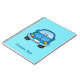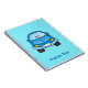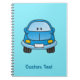 Smiling blue cartoon car. Custom background colour. Custom text.