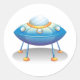 Blue Cartoon UFO Spaceship Fun Sci-Fi Classic Round Sticker