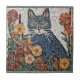 Blue Cat with Flowers Tiled Mosaic Ceramic Tile