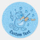 Handrawn blue cat cartoon playing the violin. Custom text.