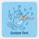 Handrawn blue cat cartoon playing the violin. Custom text.