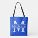 blue cross bar Life Roman font monogrammed all over print tote bag