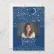 This blue funeral memorial service photo invitation honours a special one who has left this world and joined the stars.