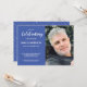Invite friends and family to share their favourite stories and memories with this elegant blue and white celebration of life photo invitation.