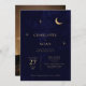Blue Celestial Gold Moon Stars Photo QR Wedding Invitation