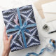Dark blue celtic knot design in tiles arranged to form a dimensional star like shape, resembles wrinkled satin fabric from the highlights and shadows