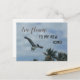 Change of address moving announcement postcard to announce your new home in style. On the front is a flying pelican in front of a partly cloudy blue sky and soaring over palm trees. In two colours and two types of typography is: I've "flown" to my new home! On the back in two types of typography is a place to personalise your address, phone number, a special note and your name.