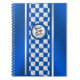 Blue Chequered Racing Stripe Logo Design Spiral Notebook