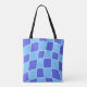 Blue Chequered Tote Bag - Brighten up your day with this stylish shoulder tote bag featuring a vibrant chequered pattern of alternating squares in shades of blue. Perfect for carrying your essentials in style, this bag is both functional and fashionable. Ideal for casual outings, shopping trips, and everyday use, the cheerful design adds a pop of colour to any outfit. Made with durable materials, this tote bag is a must-have accessory for those who love playful and bold designs.