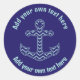 Blue Chevron Anchor Nautical Custom Text Classic Round Sticker