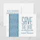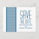 Chic and modern Chevron Border Save the Date Postcard featuring a simple chevron pattern border in dark blue and white. This stylish design will set the tone for an elegant wedding. Easy to customise, simply add your wedding details in the text fields provided. Click "Customise It" to find more personalisation options.