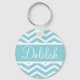 Customise this vibrant blue and white chevron pattern and pastel blue text banner with the name of your choice.