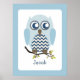 Blue + Chevron Owl Personalised Nursery Artwork Poster