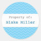 Blue chevron personalised sticker, perfect for labelling books and school supplies!