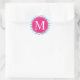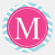 Blue Chevron Pink Monogram Classic Round Sticker