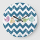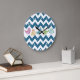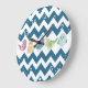 Blue Chevron Stripes Whimsical Cute Birds Owls Large Clock