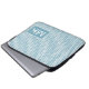 The sleeve is made of nice feeling material and seems very durable. I'm not sure how easy it'll be to clean, but the construction seems sound and the fabric is quick thick. I also like the double zipper. The printing is lovely and appears durable. The white on black contrast is nice, and the design very elegant.