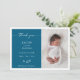 Blue Chic Minimalist Photo Baby Announcement Card