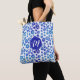 Blue China Hand Drawn Floral Pattern & Monogram Tote Bag