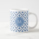 Blue Chinese Ceramic Pattern with Monogram Large Coffee Mug