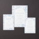 Elegant blue Chinoiserie and porcelain inspired classical wedding program cards showcasing delicate flower blooms.