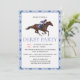 Get ready for the most exciting two minutes in sports with this elegant Derby Day invitation. Featuring a classic horse and jockey illustration framed by sophisticated blue chinoiserie floral patterns, this design perfectly captures the traditional charm and high-stakes excitement of race day. It is the ideal choice for hosts looking to blend Southern hospitality with a touch of luxury.