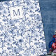 Blue Chinoiserie Toile Pattern Monogram Fleece Blanket. Customise with your initial.