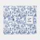 Blue Chinoiserie Toile Pattern Monogram Fleece Blanket