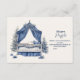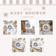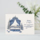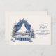 This elegant baby shower design features a beautifully detailed blue canopy crib adorned with festive garlands, set against a backdrop of snow-dusted pine trees and wrapped gifts. The classic navy palette and vintage watercolor style bring a timeless, wintery charm perfect for celebrating a baby boy during the holiday season.
