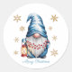 Blue Christmas Gnome with Red Lantern Berries Classic Round Sticker