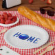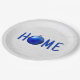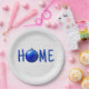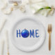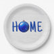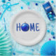 Blue holiday ornament in HOME text on rustic whitewashed wood