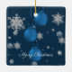 Decorate your tree this holiday season with a Blue Christmas Ornaments Ceramic Ornament. Ornament design features a trio of hanging Christmas ornaments with falling snowflakes and a dark blue background. Additional gift and holiday items available with this design as well.