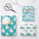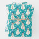 Blue Christmas Penguin, Snowman, Reindeer Set of Wrapping Paper Sheet