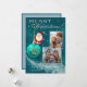 Merry and bright is how we describe this adorable flat Christmas card that features two spots for your favorite photos! Easy to update with a spot for your personal message on the backside of the card. Front features an adorable Santa Clause standing atop a teal-colored ornament dangling from a gold ribbon. A snow covered background and lots of snowflakes round it out on a blue-green background - part of our Blue Christmas Collection. Be sure to update the text on both the front and back prior to placing into your shopping cart.