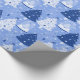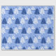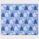 Blue and white Christmas trees with winter snow globes and snowflakes.