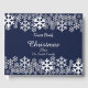 Blue Christmas guest book featuring a snowflakes pattern and custom text.