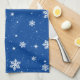 This festive kitchen towel features a cute Christmas pattern with white stars and snowflakes on a customisable blue background. Click Edit design to change the background colour.