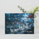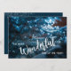 A beautiful snow-covered Christmas tree reflects the blue lights of the evening and features "The most Wonderful time of the year" on the front of these holiday postcards and your personal holiday greeting and logo on the back.