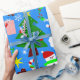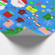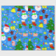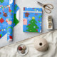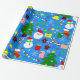 blue christmas tree santa claus wrapping paper