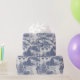 This MEDIUM SIZE PRINT is great for wrapping shirt boxe size and larger. Celebrate Christmas right this year with this gorgeous wrapping paper featuring a toile design with a beautiful Christmas tree in the foreground being discovered by a curious child. A dancing couple, trees, Santa's sleigh, presents, and a reindeer all grace the mid-ground. And, in the background, there's a cosy winter cabin nestled amongst the hills, surrounded by trees.