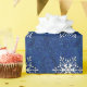 Christmas wrapping paper with white snowflakes on blue glitter background